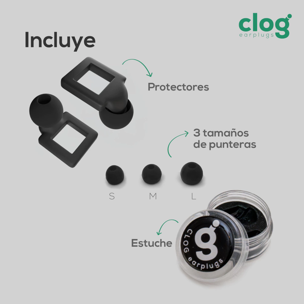 Disfrutá un mundo menos ruidoso y de mayor tranquilidad con nuestros tapones de oídos Clog, diseñados para proteger la audición de manera cómoda y canchera.