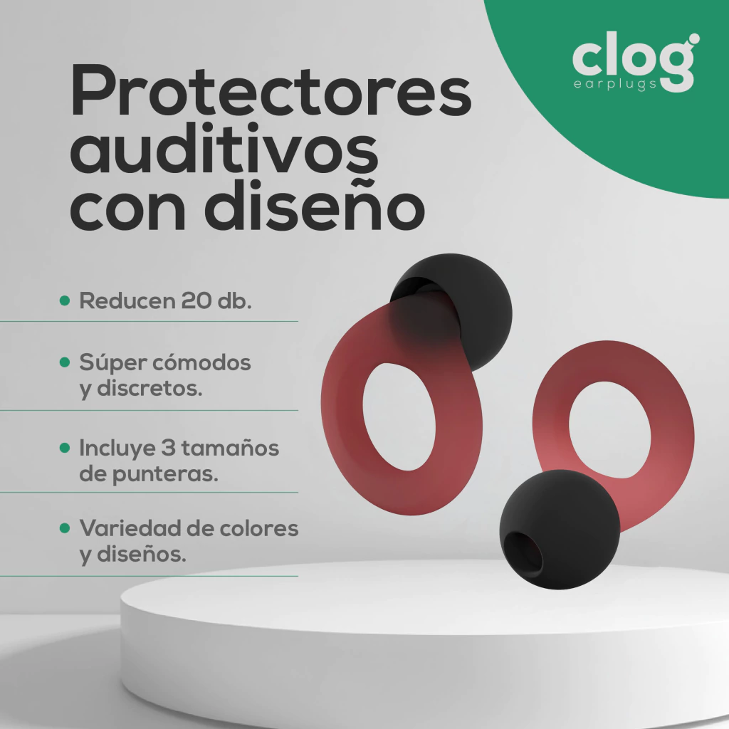 Disfrutá un mundo menos ruidoso y de mayor tranquilidad con nuestros tapones de oídos Clog, diseñados para proteger la audición de manera cómoda y canchera.